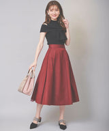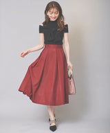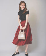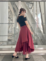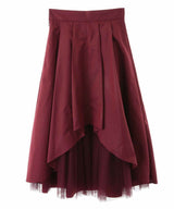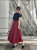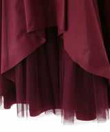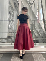 Seen from the front, it is a simple taffeta tuck skirt, but the bold back style is an eye-catching piece.