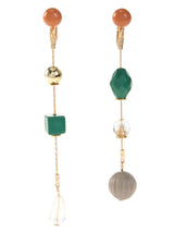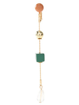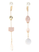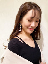 Earrings with a catchy impression combining parts of different shapes. By not fixing the parts, you can adjust the desired interval on the chain. It's colorful and colorful in pink It is a two-color development with a mature finish