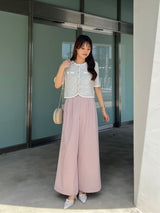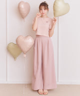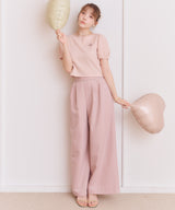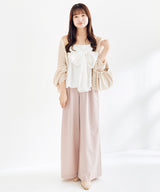 Wide pants with an eye-catching lace belt exude a feminine mood. Simply tucking in your top brings out the delicate look of the lace, giving your entire outfit a glamorous finish. The wide silhouette does not show the lines of your legs, and not only does it conceal your figure, it also accentuates your slender vertical lines for a beautiful silhouette. The tucks on the front add a dynamic, three-dimensional look, giving the pants a light look. Despite their neat design, they are a versatile pair that can be worn both daily and for going out. Available in three colors: feminine pink, sophisticated brown, and chic charcoal.