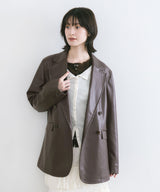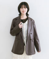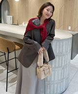 The highlight of this blouson is the transition line that runs from the body to the sleeves. The body is made of matte fabric, while the line is made of shiny fabric for a more defined look. The arms are made large, giving it a relaxed impression despite its short length. The front is short and the back is long, making it easy to match with any bottoms. Elastic at the back waist creates a soft, voluminous look. This season's sporty item is recommended to be paired with feminine items.