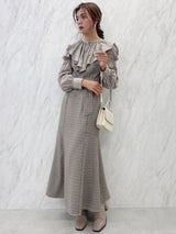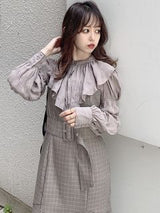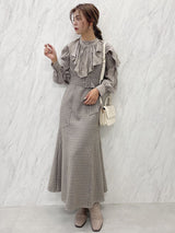 Three-dimensional fabric with wrinkles is used for the blouse.