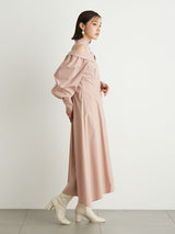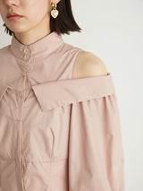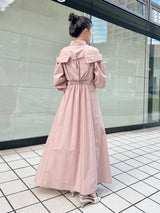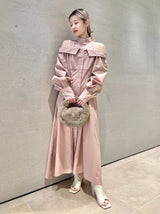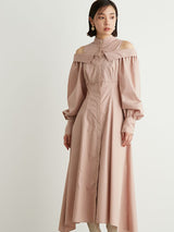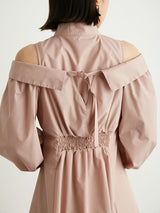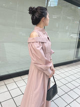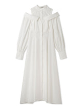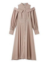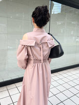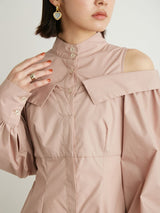 A shirt dress with a layered design that looks great on its own. The shoulders have details that show off healthy skin for a trendy look. A feminine silhouette with a supple fit and flare that gives just the right amount of definition from the upper body to the skirt. You can adjust the look of her shoulders by changing the length of her back belt.