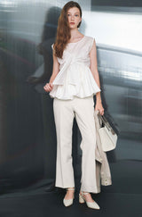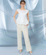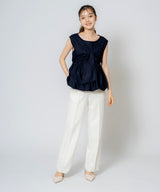 This blouse is made from a firm material with a smooth touch that feels good against the skin.