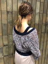 A knit with an American sleeve that makes the decollete line look beautiful. The point is to make it slightly glossy so that it is not too hot. When combined with the same cardigan (LWND201123), you can enjoy it as an ensemble of individuality.
