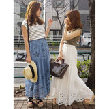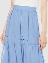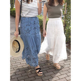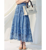 A cute flared maxi skirt made from chiffon Yangyanagi with original cutwork embroidery. The trendy and airy material is finished with one embroidered detail that looks like an adult. [Styling] Date style: We recommend wearing a blouse with the same embroidery as a setup. Along with PVC clear sandals and a basket bag, this year's uniqueness will come out Casual style: Knit pullovers and T-shirts are also worn, and styling with a sense of looseness wearing petanco sandals is also recommended.