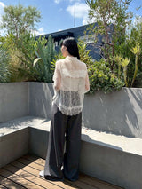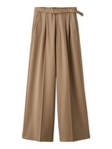 These straight-leg pants feature a center crease that accentuates the vertical lines, creating a beautiful leg effect. The deep tucks create a three-dimensional silhouette, allowing for a clean fit without clinging to the body. Belt loops are provided at the waist, allowing you to wear a belt to create a natural, defined look. These versatile pants are suitable for both the office and casual styles.