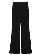 Feminine flared pants finished with three-dimensional and expressive total lace. With a design that fits reasonably well, you can expect a style-up effect. The waist is made of rubber and is comfortable to wear, so it is also recommended for remote work. You can enjoy it in a casual down style with an oversized knit, or in an elegant setup layered with a dress made of the same material