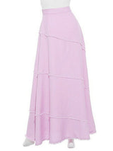 Maxi skirt with a characteristic of switching bias. Designed with a fluffy fringe, for a nice accent that adds a sense of softness. Using a material with a light, natural mood, it achieves a refreshing style despite its long length.