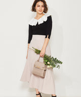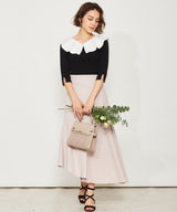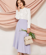 A skirt that is easy to match with tops with designs such as embroidered knits and collars.
