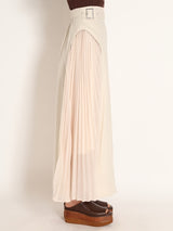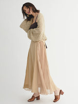 A switching skirt with pleated chiffon on both sides for high sensitivity.