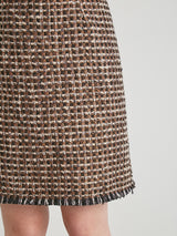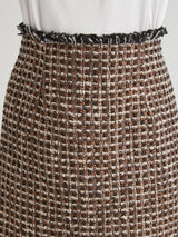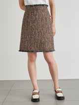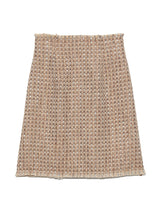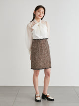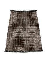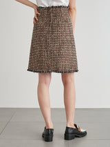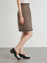 A trapezoidal mini skirt made from elegant tweed material. Fringe is applied to the upper and lower hem to add a sense of omission to the sophisticated texture and finish it in a daily style. As it is a high-waisted design that can be styled up, it is recommended to coordinate with tops. Easy to put on and take off with the back zipper. It is a mini bottom that you can enjoy agelessly with an exquisite sense of length that is neither too long nor too short.