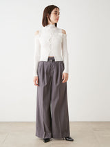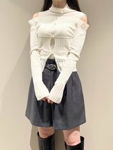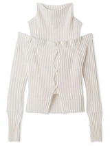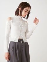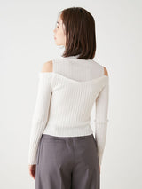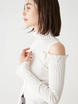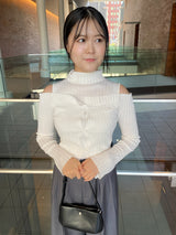A great value set that combines an off-shoulder design cardigan and a sleeveless top. This item perfectly balances the cropped inner layer that can be seen from the front-opening cardigan, perfecting this year's layered look. The high collar and long sleeves give it a modern look. The tight-silhouette cardigan has a loop design between the buttons to make it more trendy. Each piece can be worn alone, expanding the range of your coordination.