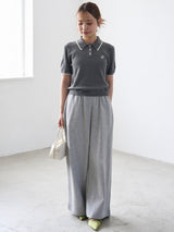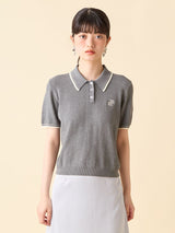 This short-sleeved knit polo top gives off a sophisticated impression. The body has a basic size with just the right amount of room, and the ribbed hem adds a subtle accent. The original "LILY BROWN" logo is embroidered on the chest, adding a touch of brand identity to the simple design.